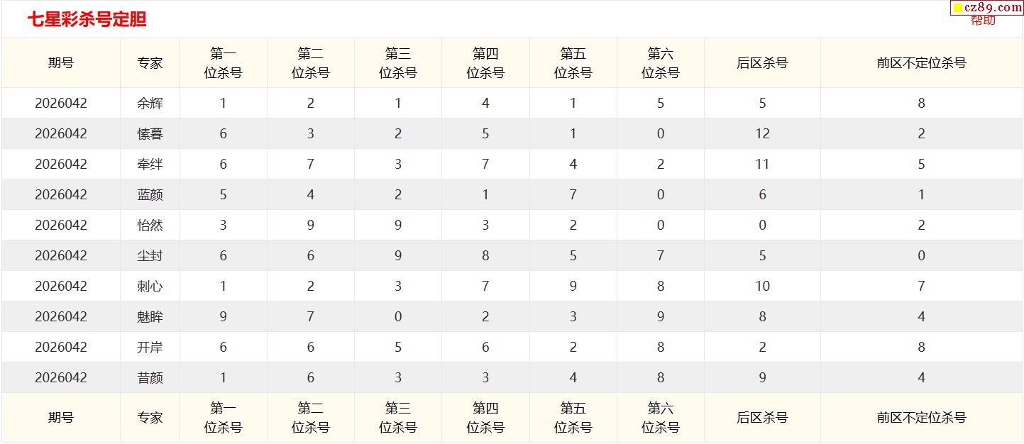 七星彩042期 彩宝贝专家直选杀号预测图表