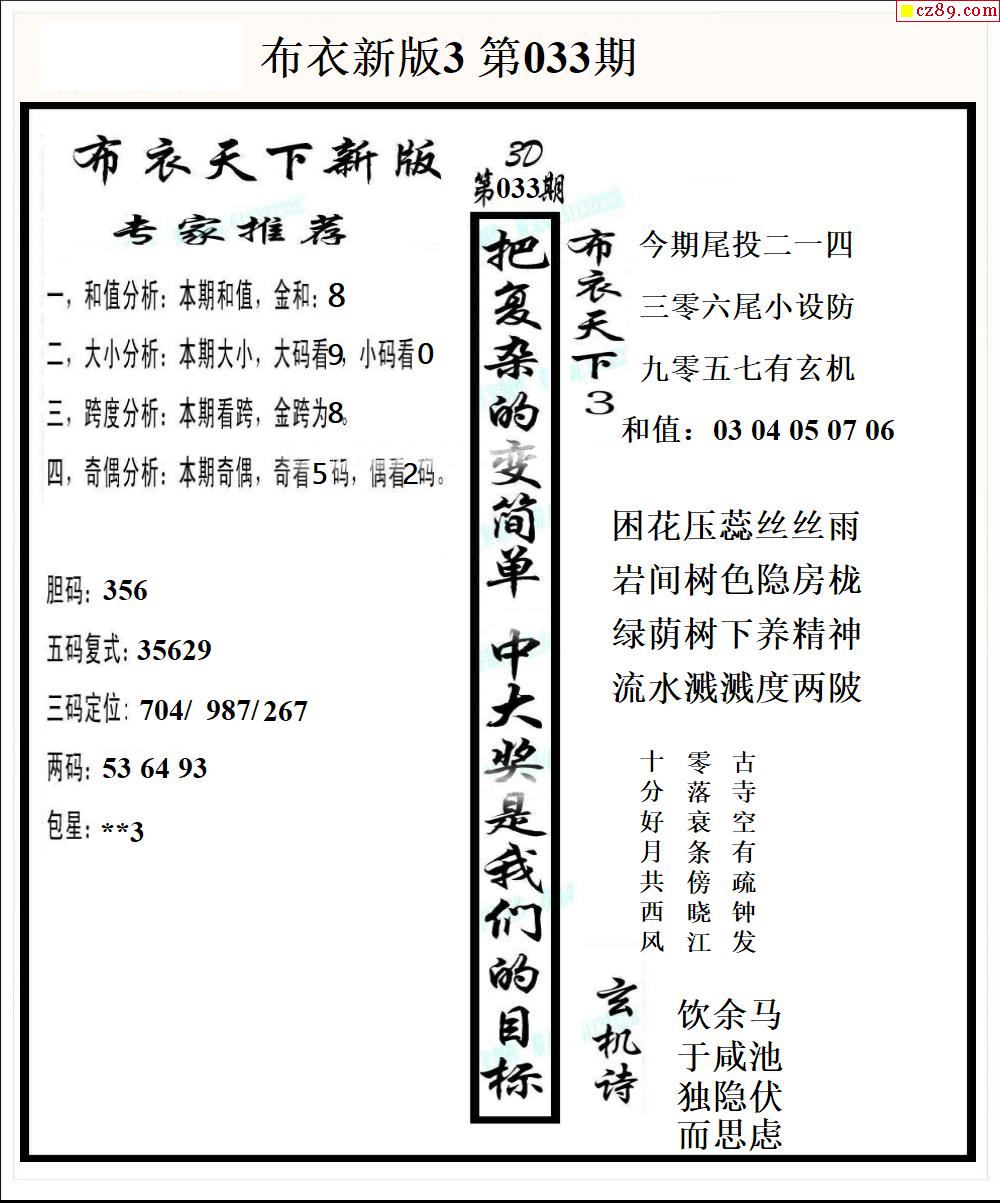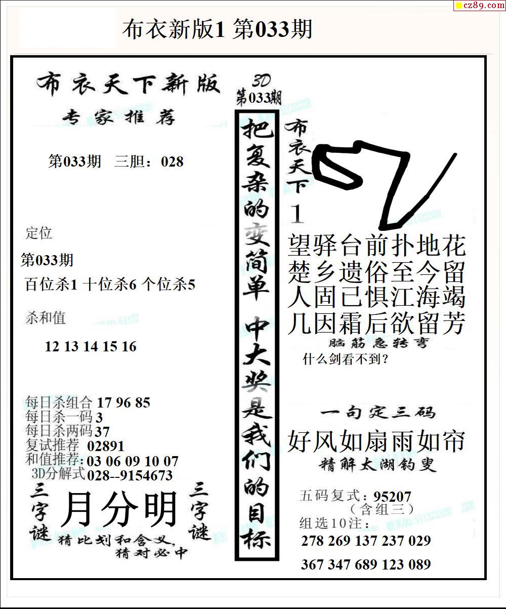 布衣天下新版2026033期3d图谜