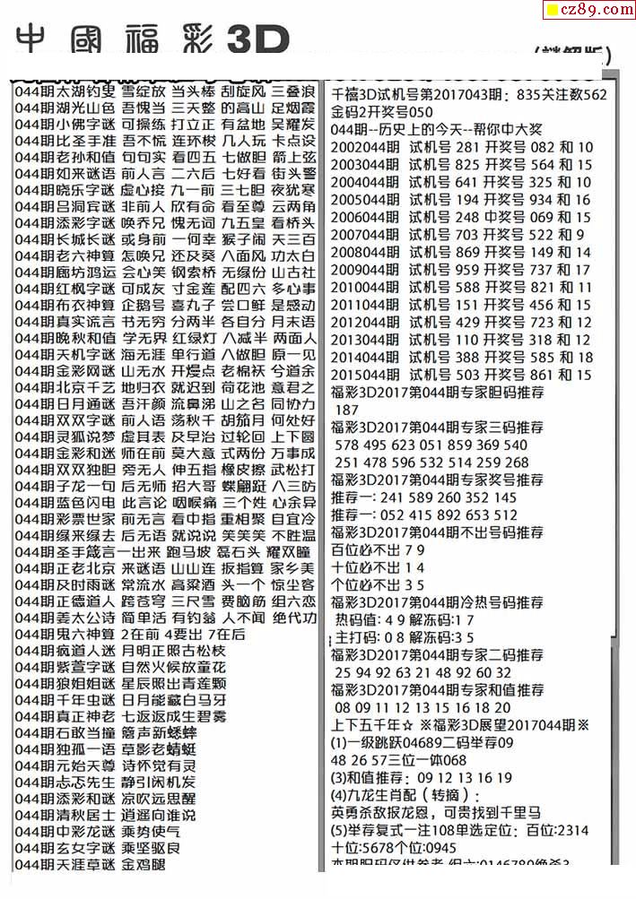 杀手+鑫马快报+字迷汇总26年044期3d图谜-「3D 试 机 号」福彩3d正版藏机图-3d藏机图天齐-排列三走势图带连线-福彩网