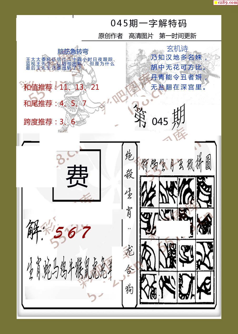 首页 > 福彩3D图谜 > 26年045期一字解特码福彩3d彩报