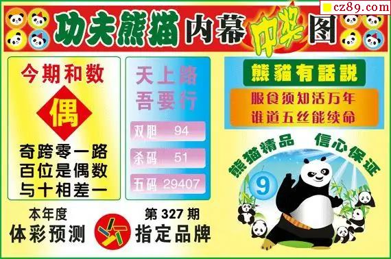 体彩P325年图迷327期 功夫熊猫内幕中奖图